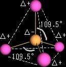 また分子の極性は原子間の電気陰性度の差だけでなく分子の形も影響しています。 下図中のΔ(デルタ)は「わずか」であることを示します。