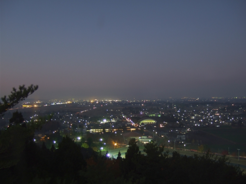 お次は五泉市の村松公園展望台からの夜景です。ここの展望台は、室内からの鑑賞で、寒くない反面、電灯の写りこみなどで夜景鑑賞には若干勿体無さを感じます。五泉市は都会でない分、光量は少なめですが街に近いので十分、夜景を楽しむことができると思います。